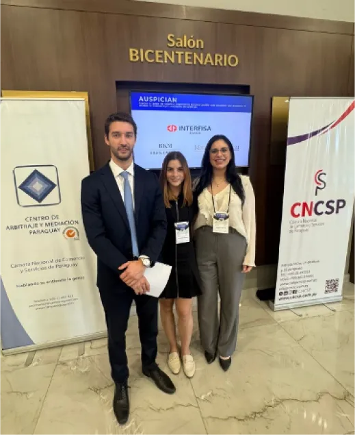 Nuestros abogados Chiara Fretes, Victoria Amadeo y Santiago Troche participaron de la XII Conferencia de Arbitraje Comercial Nacional e Internacional organizada por la Cámara de Arbitraje y Mediación del Paraguay (CAMP) de la Cámara Nacional de Comercio y Servicios de Paraguay (CNCSP).